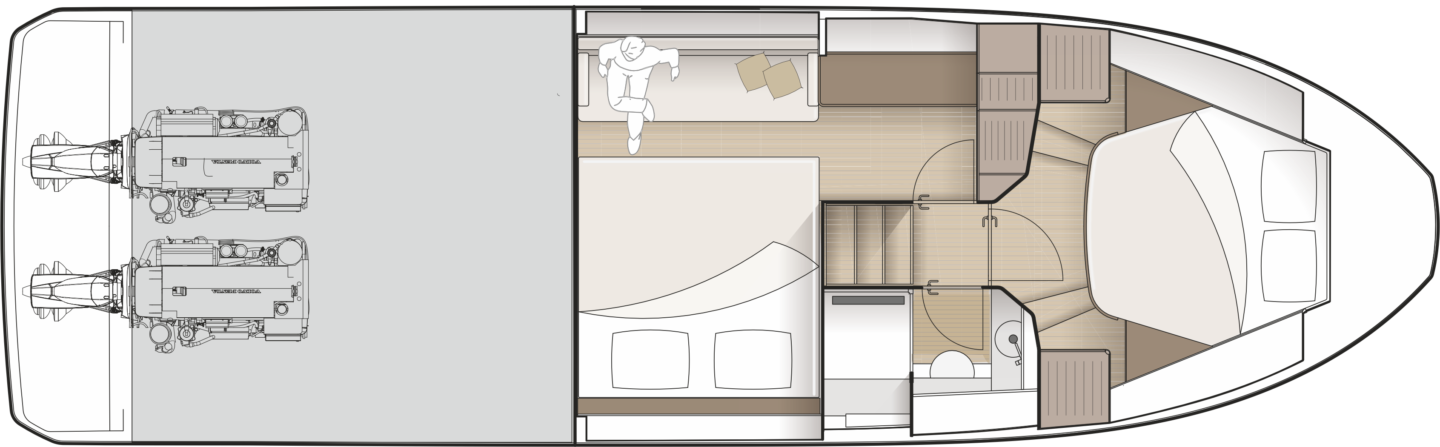 As with all Marex models, there are multiple power options available with either Volvo D4’s or D6’s on sterndrives, offering efficient and effortless cruising, coupled with ease of manoeuvrability for an enjoyable driving experience.