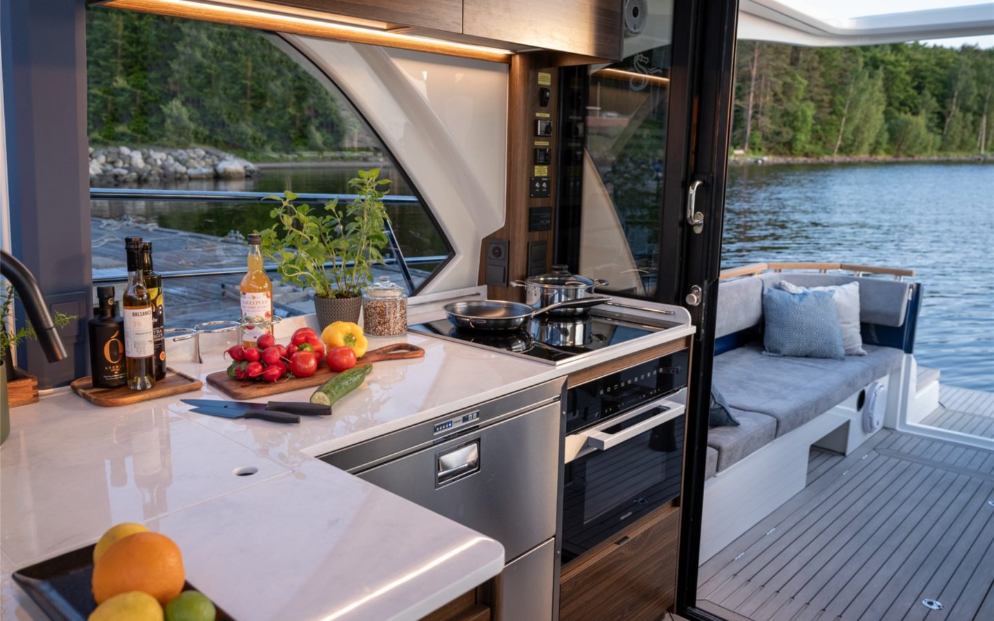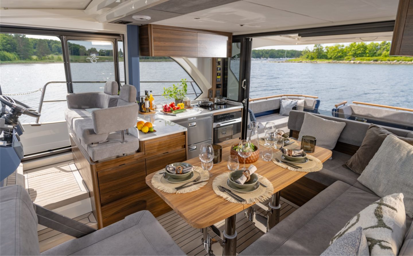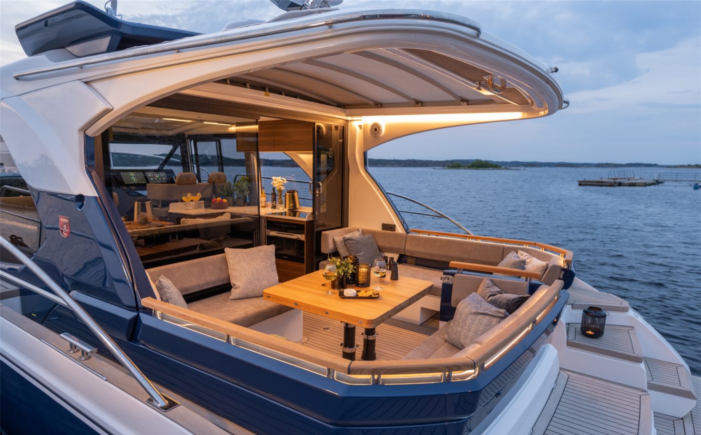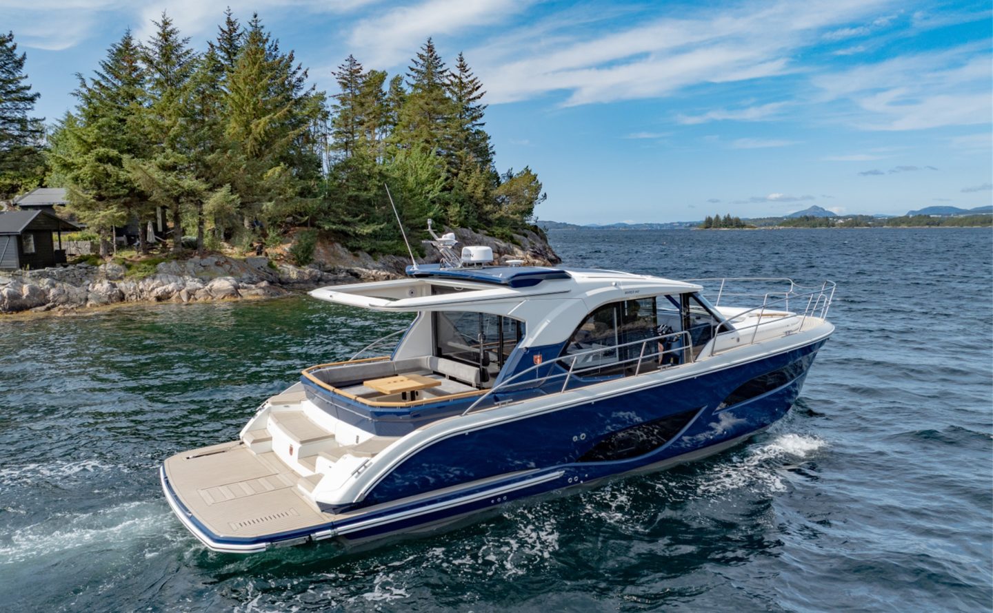 The 440 offers two totally different deck formats, as well as either a 2 or 3 cabin layout below meaning complete flexibility for owner choice. The 440 Scandinavia offers expansive cockpit seating and dining area, with the brilliant versatility of two large sofa areas to enjoy come rain or shine. The 440 Gourmet Cruiser features the biggest galley and bar area in it’s class, perfect for entertaining guests or enjoying as a family with it’s brilliant open-plan aspect and direct access on to the large aft cockpit area.