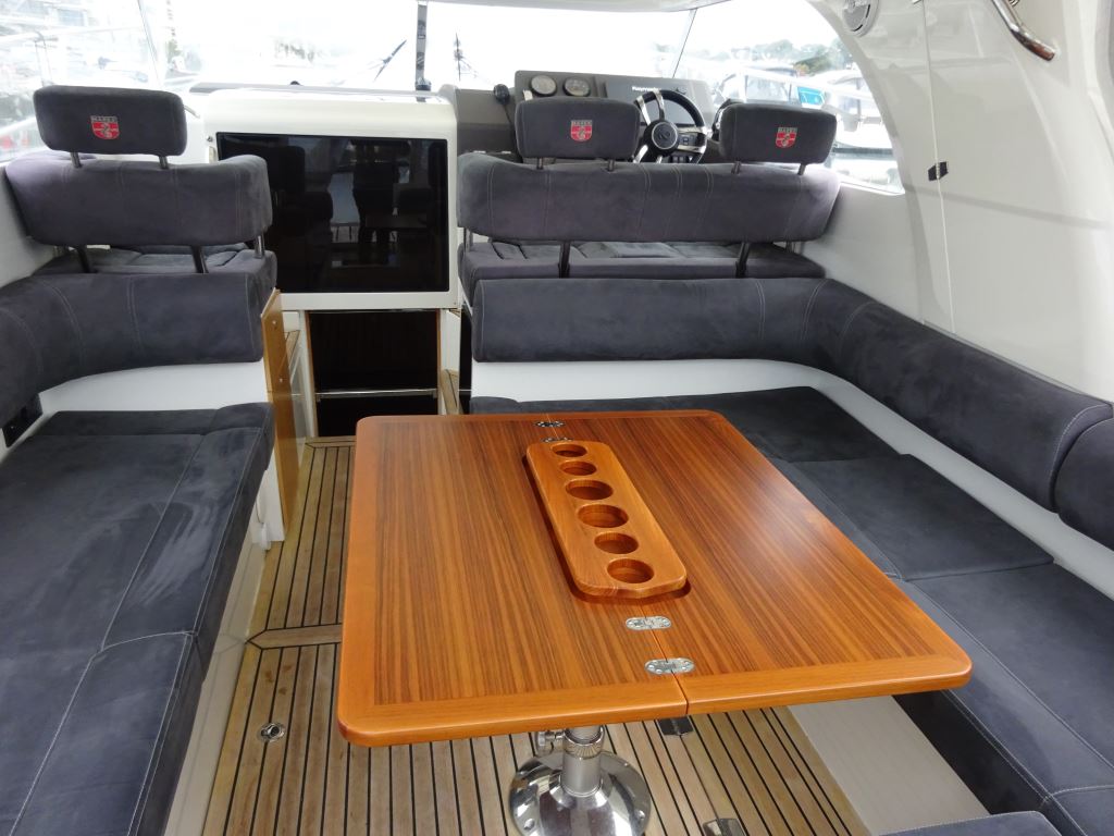 Teak decking full pack – Electric anchor winch package on bow – Upgrade to s/s chain for anchor winch – Bow thruster – Antifouling & epoxy primer – Trim tab interceptors – Twin sliding sunroofs – Sunbed cushion for foredeck – Cover for sunbed cushion – Sunbrella canopy covers (fitted 2023, re-proofed September 2025) – Snap davits including removable heads – Shower on bathing platform – Additional 12v socket in locker – Windscreen wipers with interval – Mooring pack (incl. fenders & warps)