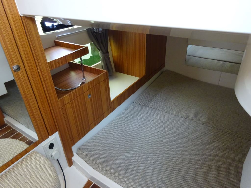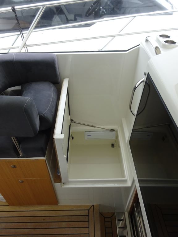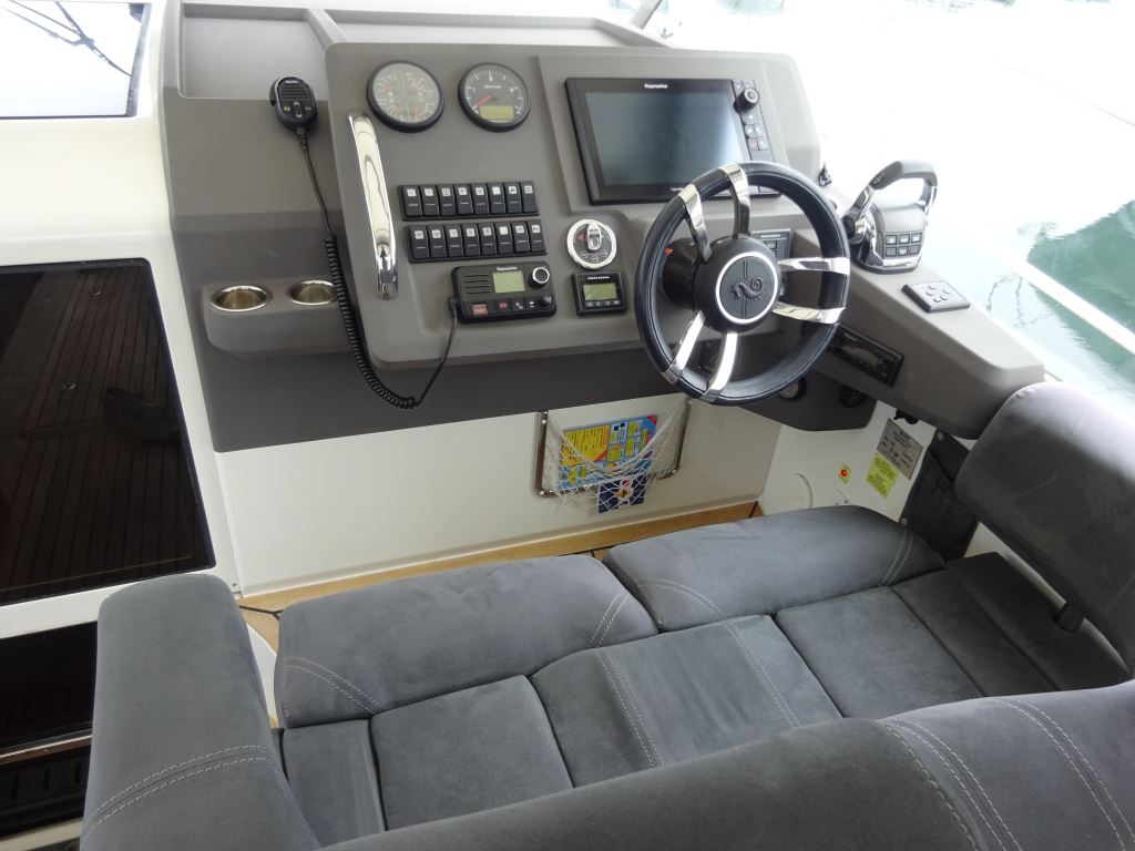 Raymarine eS127 12” plotter & GPS – Raymarine depth transducer – Raymarine Ray50 VHF radio incl. antenna – Shorepower system (230v) – Auto battery charger – 3 x service batteries – Electric remote battery switches – Stereo/radio – Upgraded Sony speakers