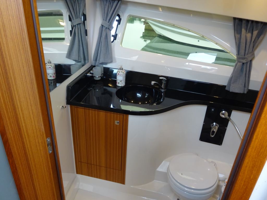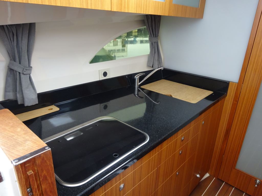 Fridge/coolbox – Gas hob – Hot water system with calorifier – Diesel heating system – Defroster/screen demister (engine driven) – UK sockets for shorepower system – Teak on cockpit floor – Cover for cockpit table – Bespoke glasswear etc storage in drawers – Upgraded Niroxx cockpit upholstery (grey) – Nextel finish on helm (medium grey) – Curtains in cabins – Electric pump out for septic tank – Electric flush toilet conversion (June 2024) – Sea-Smart toilet sanitisation system