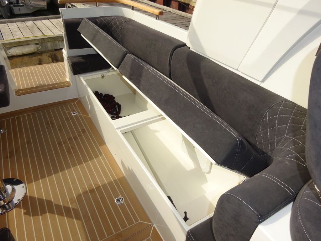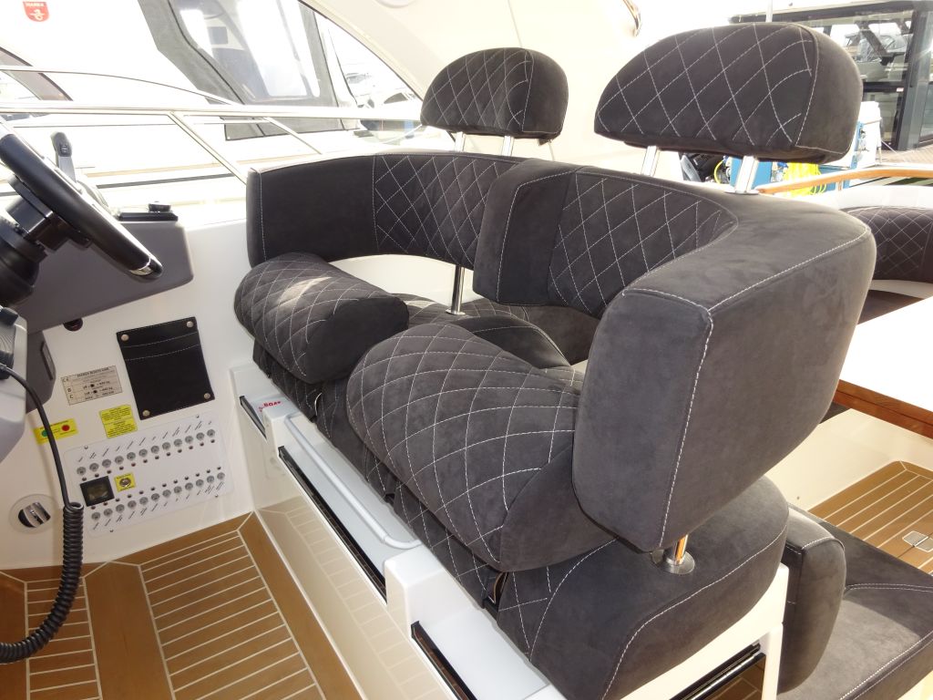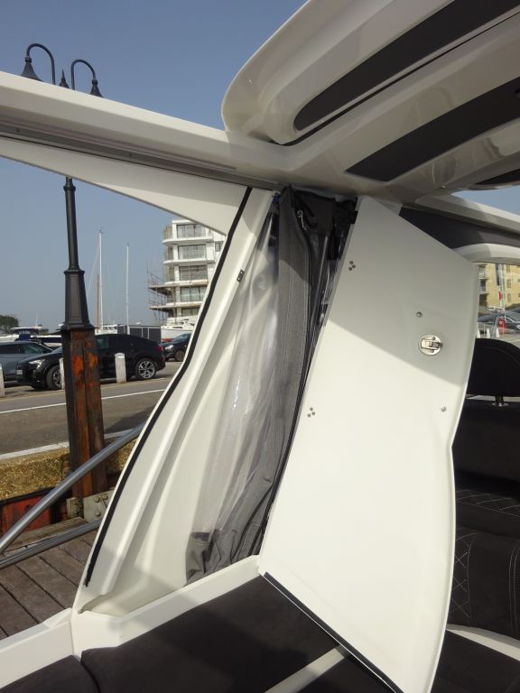 Bow thruster – Antifouling & epoxy primer – Electric anchor winch package on bow – Upgrade to s/s chain for anchor winch – Zipwake dynamic trim control system – Volvo Penta EasyConnect interface – Flexiteek on all external decks – Courtesy deck lights – Twin sliding sunroofs – Aft cockpit curtain style covers – Windscreen wipers with interval – Sunbed cushion for foredeck – Shower on bathing platform – Mooring pack (incl. fenders & warps)
