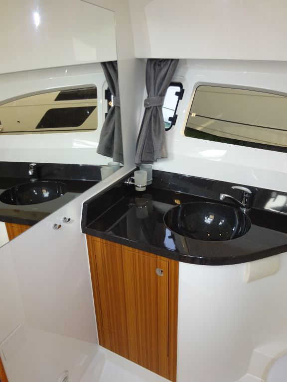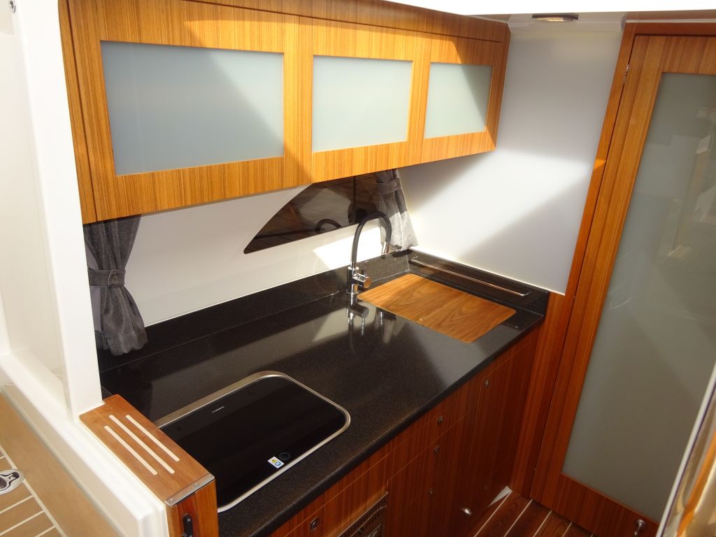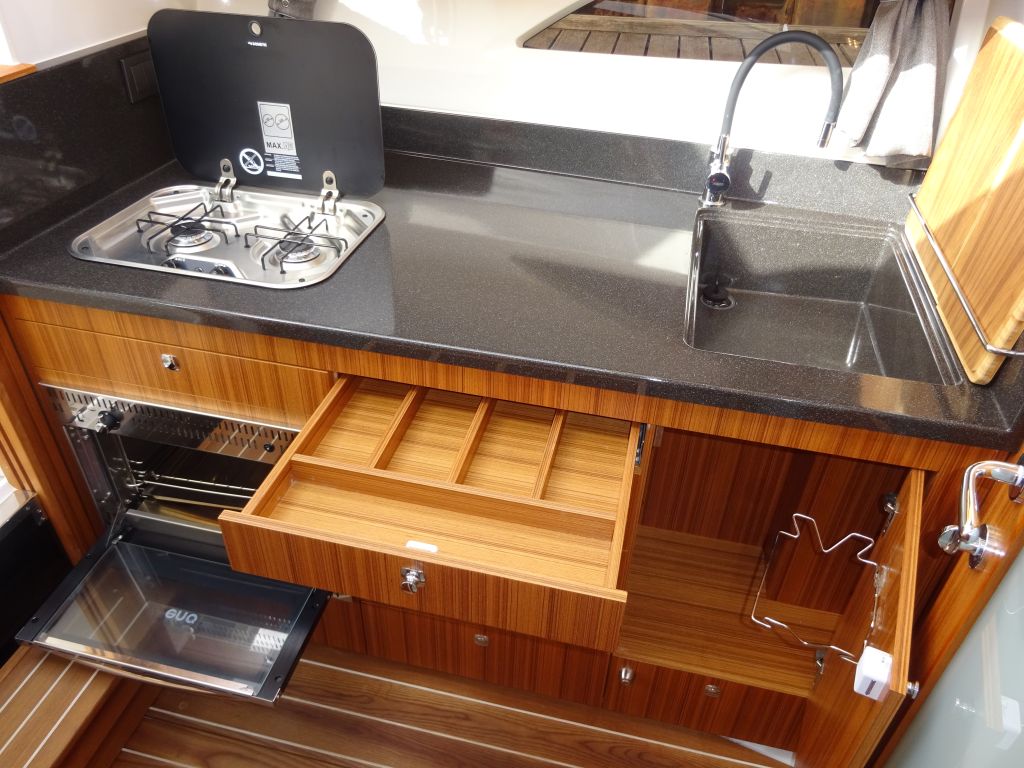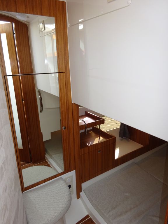 Diesel heating system – Defroster/screen demister (engine driven) – Hot water system with calorifier – Fridge/coolbox – Gas hob – Gas oven – Freshwater electric flush toilet – Flexiteek in cockpit – Upgraded Alcantara cockpit upholstery (grey) – Upgraded Nextel finish at helm (grey) – Lined curtains in cabins