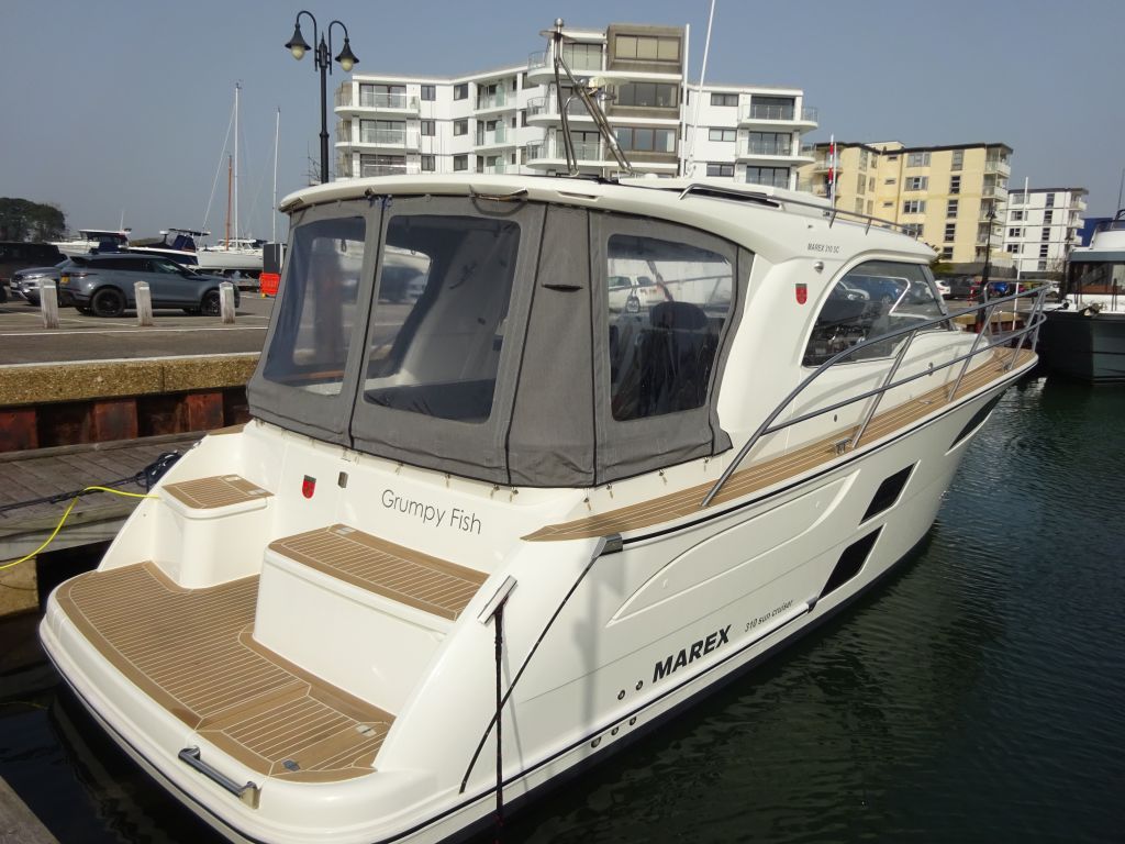 The multi-award-winning Marex 310 offers a fabulous cockpit, twin cabin accommodation and innovative canopy cover system. First supplied by us in 2023, Grumpy Fish features a comprehensive spec with all the most desirable options including FlexiTeek decking. The Volvo Penta D6 380hp engine, Zipwake trim tabs and Raymarine navigation package mean she is well equipped for cruising in comfort. Recently antifouled with fresh anodes and outdrive serviced (Jan/Feb 26) she is ready to enjoy this coming season!