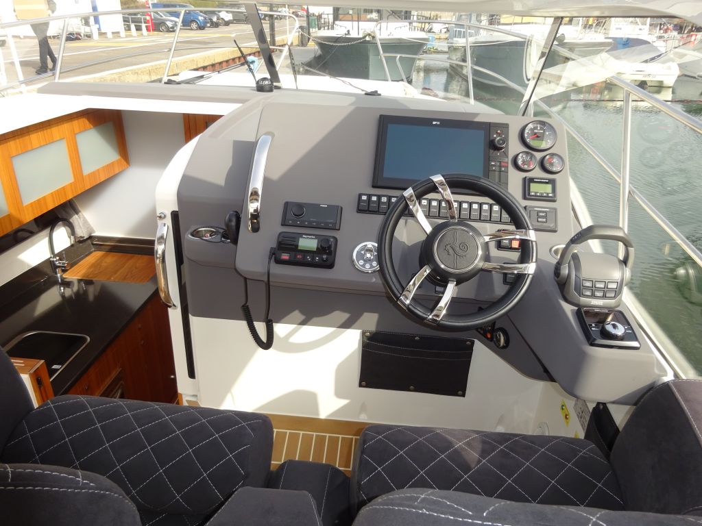 Raymarine Axiom2 Pro-S 12” plotter/GPS – Raymarine depth transducer – Raymarine Ray53 VHF radio incl. antenna – Raymarine AIS700 transceiver – TV antenna incl. aerial sockets – Fusion MS-RA670 stereo incl DAB module – Camera for aft view to plotter – Shorepower system – Auto battery charger – Electric remote battery switches – UK sockets for shorepower system