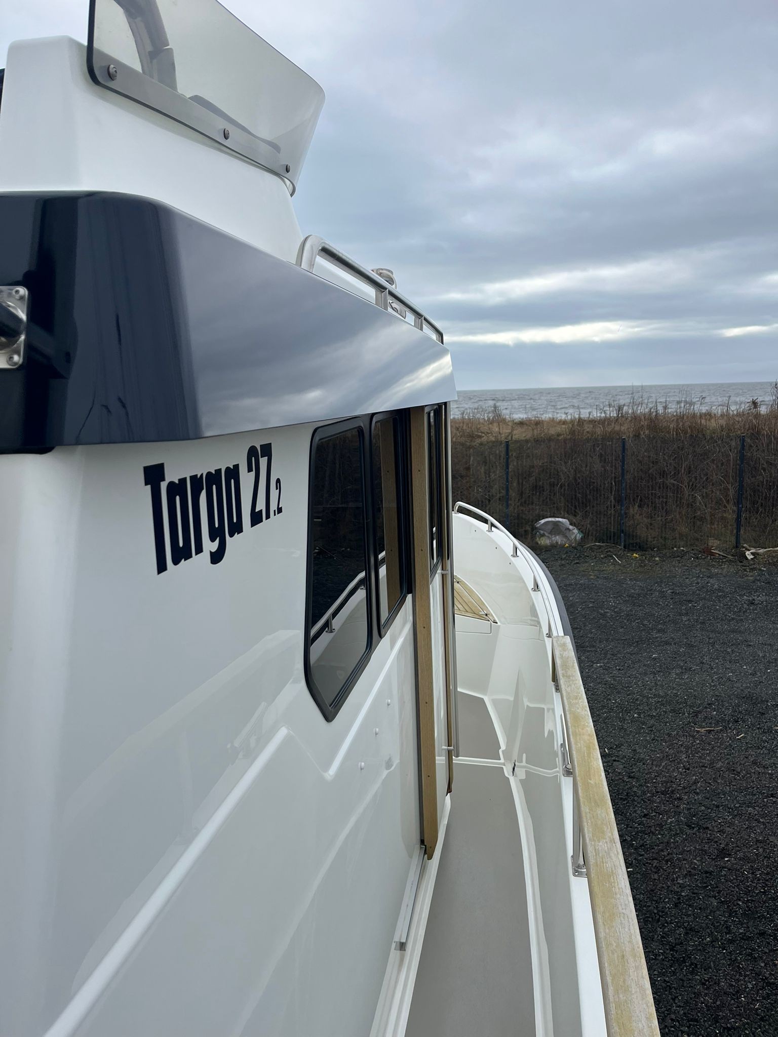 The T27.2 is an ever-popular model offering a great all-round package and abilities way beyond what it’s compact size would suggest. Spirit is a excellent example in classic Targa colours with dark blue hull, teak seat tops, Blackline windows and even bespoke fitted exterior cushions. She features a comprehensive spec including Raymarine navgear package and is fitted with the powerful Volvo D6 440hp engine on DPI sterndrive. She is nicely presented throughout and with a fresh coat of antifoul on the hull and outdrive applied in February 2026, she is ready to enjoy this spring.