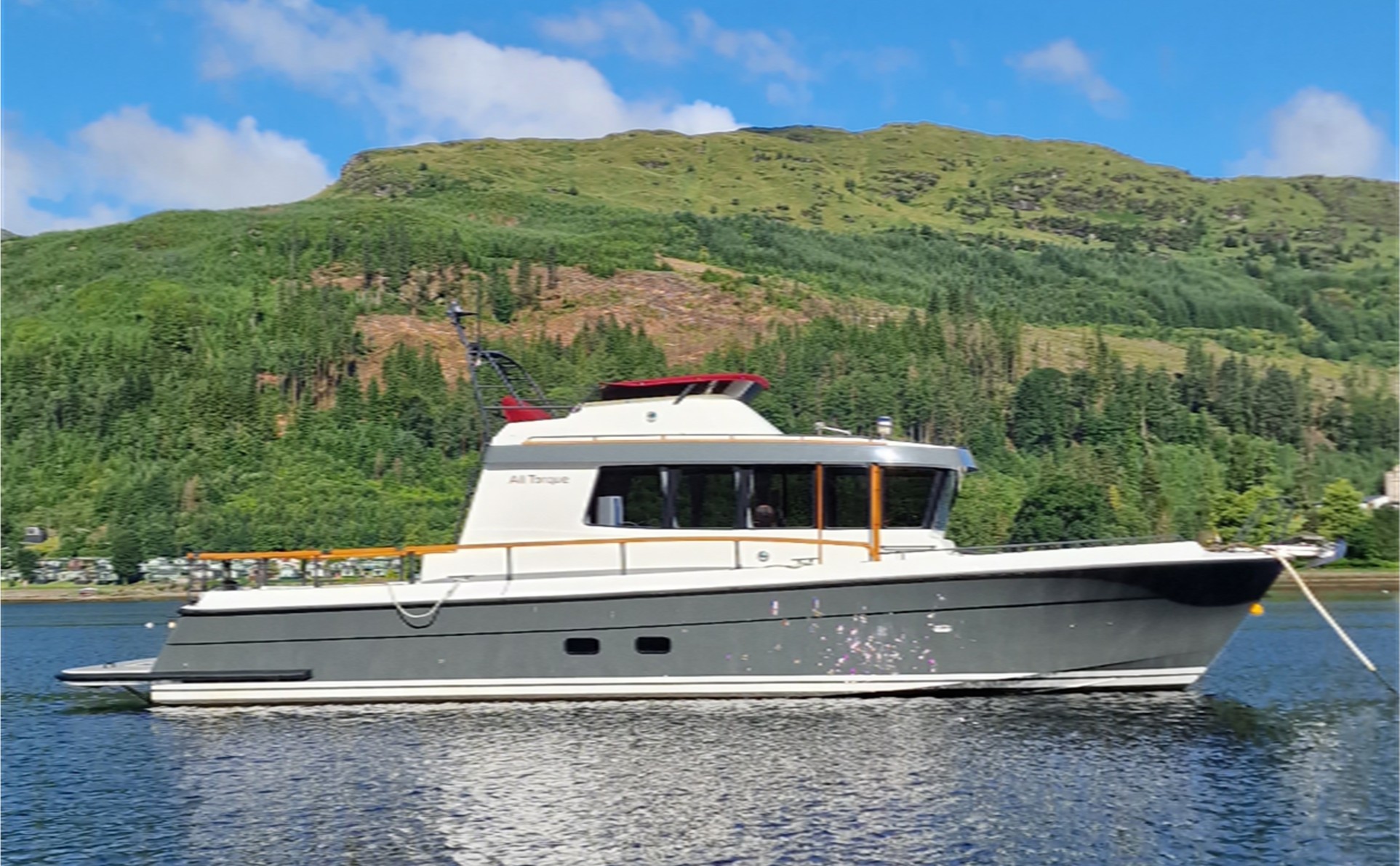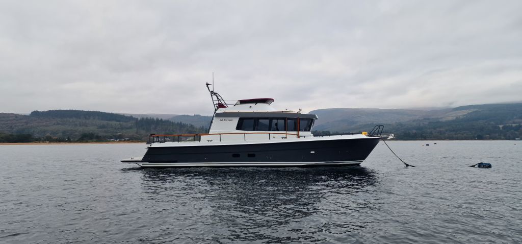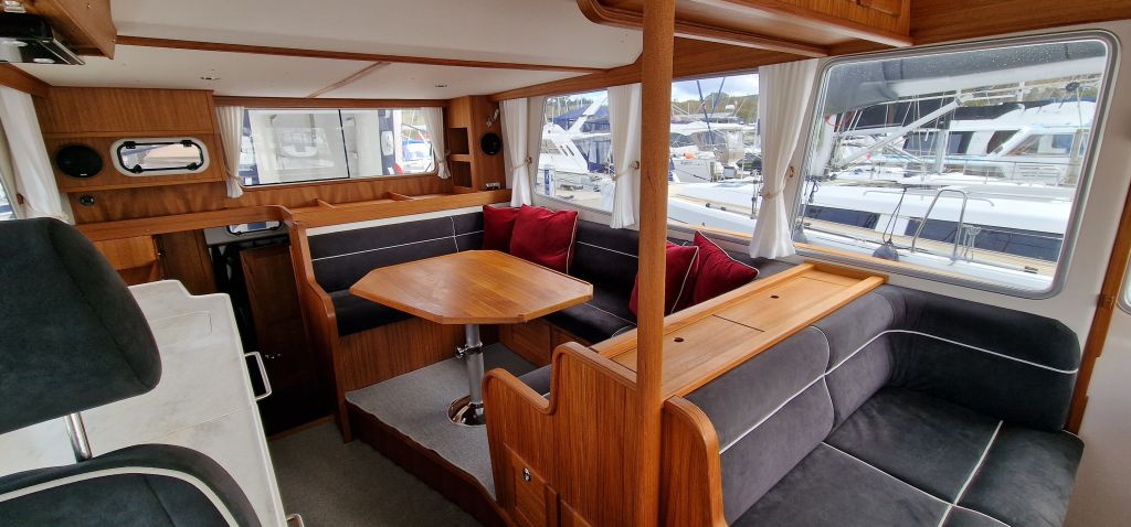 Eberspacher D4 diesel heating system – Engine driven heating/demister – Folding sofa in pilothouse – Reflective sun blinds on forward windows – Pleated fabric blinds on side/aft windows – Portlights s/s in hull (incl. second set) – Blinds on cabin portlights – Fridge under helm seat (12v) – Galley module with sink & gas hob – Carpet in cabins (grey) – Angled teak unit at helm for plotter – Helm GRP console in black – Contemporary interior joinery – Pilothouse roof in white vinyl – Hot water system by calorifier – Upgraded water filter – Electric flush toilet – Saloon table on hi-lo pole – Grammer helm seat (incl. head & arm rests) – Alcantara upholstery in pilothouse (grey) – Alcantara upholstery in cabins (grey)