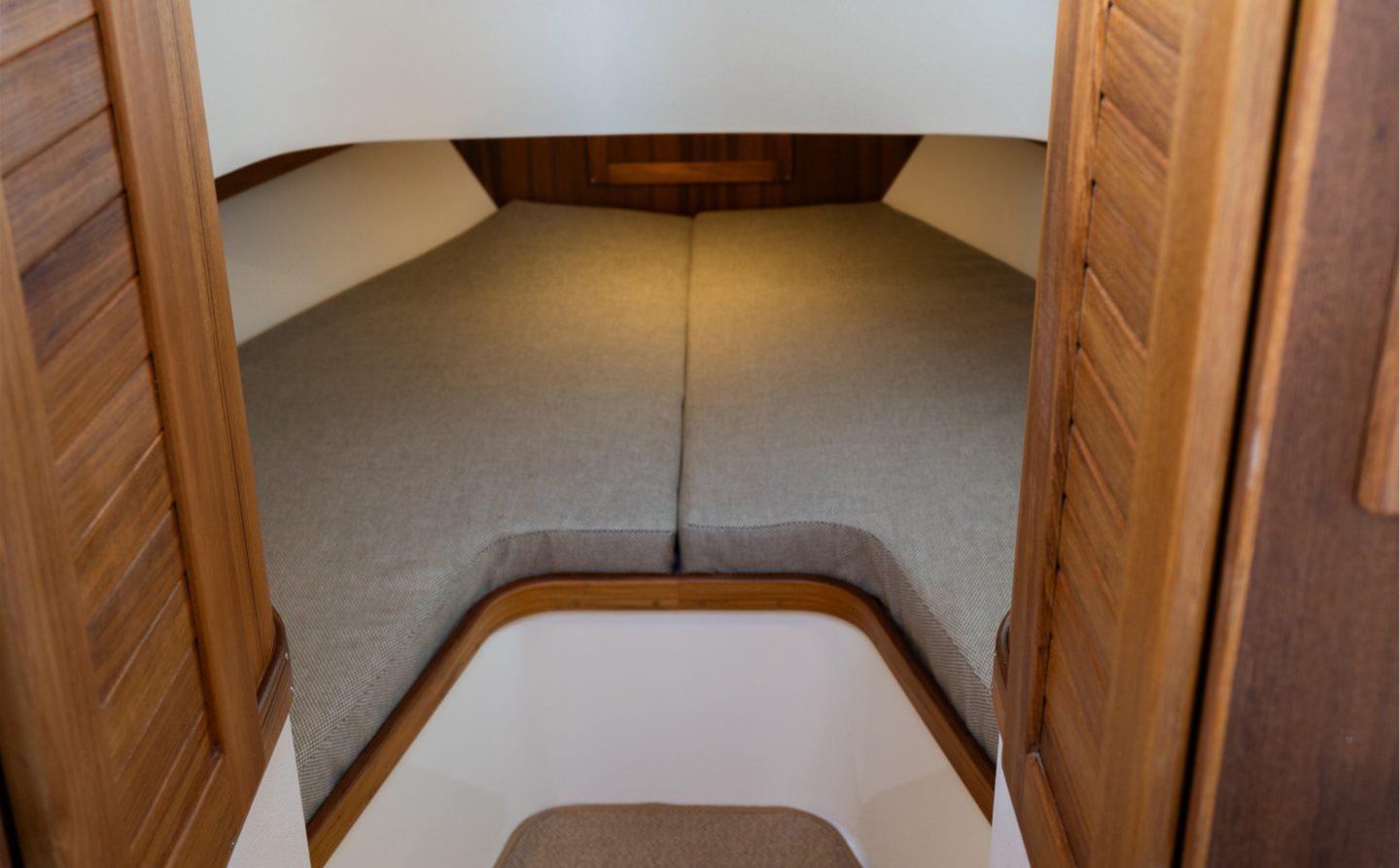 A true “all-rounder”, the 32 for many offers the perfect combination of comfortable twin cabin accommodation, in still a relatively compact overall size. Clever use of space means two spacious cabins with an en-suite toilet & shower room aft. An increased beam also offers further interior volume and deck space over the smaller models.